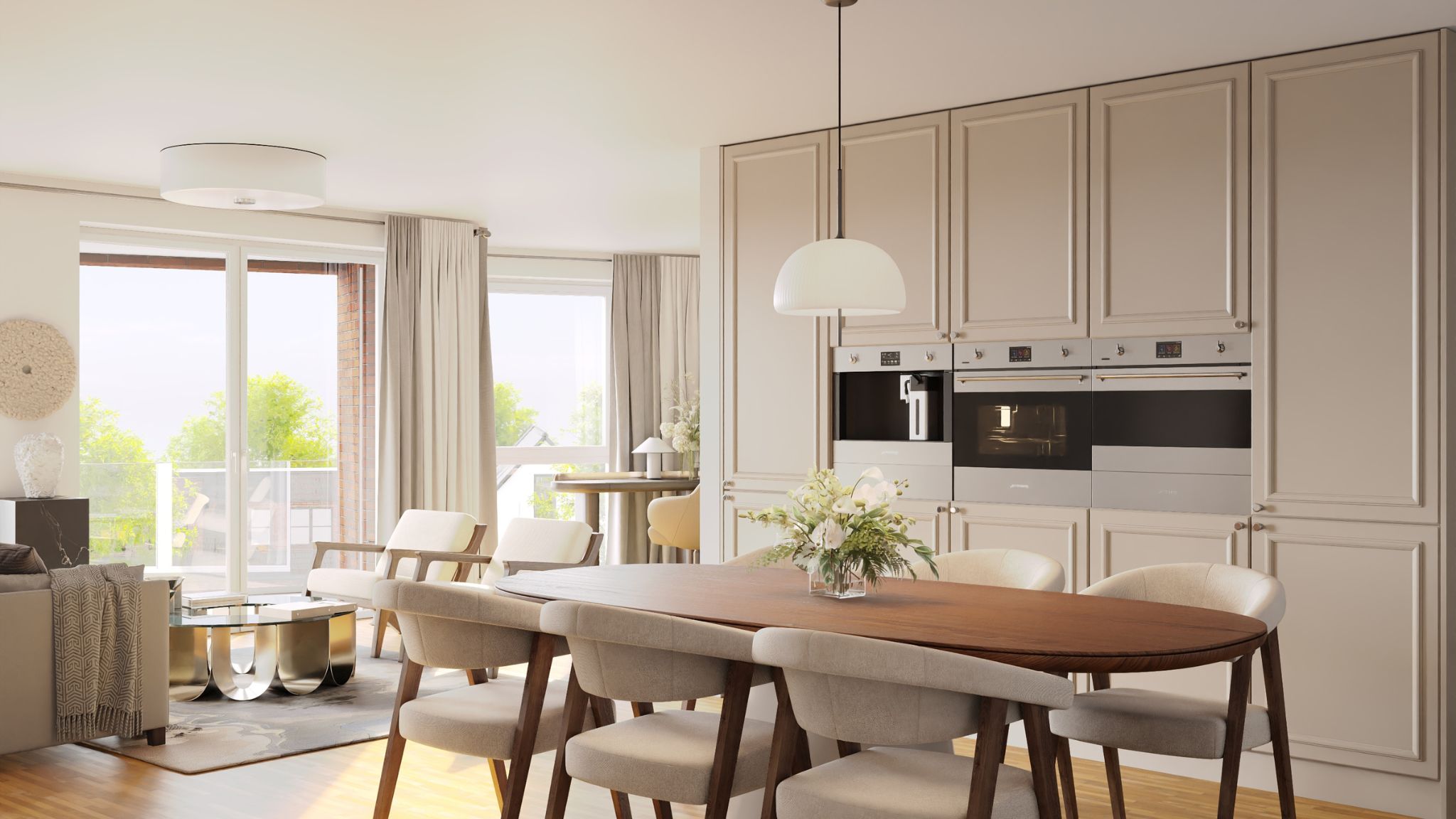 Das Gebäude „An der Doppeleiche“ wird nach KfW-55-Standard errichtet und erfüllt damit hohe energetische Anforderungen. Die Kombination aus hochwertiger Dämmung, dreifach verglasten Fenstern und einer modernen Fernwärmeversorgung sorgt für dauerhaft niedrige Energieverbräuche – und damit für spürbare Einsparungen bei den Betriebskosten. Eine kontrollierte Be- und Entlüftungsanlage hält die Luft frisch, ganz ohne aktives Lüften.